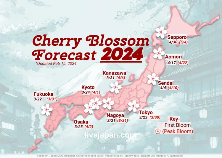 Bloom Forecasts: Keep an eye on cherry blossom forecasts, which predict when and where the blossoms will reach full bloom.