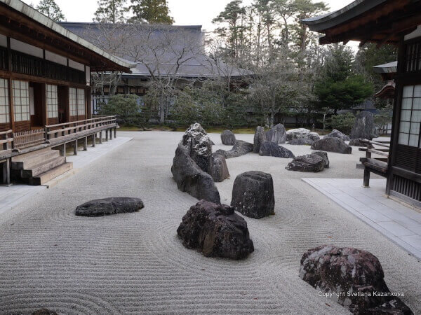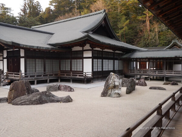 The architecture of Kongobu-ji Temple is a testament to Japanese artistic and architectural prowess. The spacious main hall, known as the “Kondo,” showcases intricate woodcarvings, vivid artwork, and traditional design elements. The Sanko Zon, an exquisite sliding door painting, stands as a masterpiece of Japanese artistry.